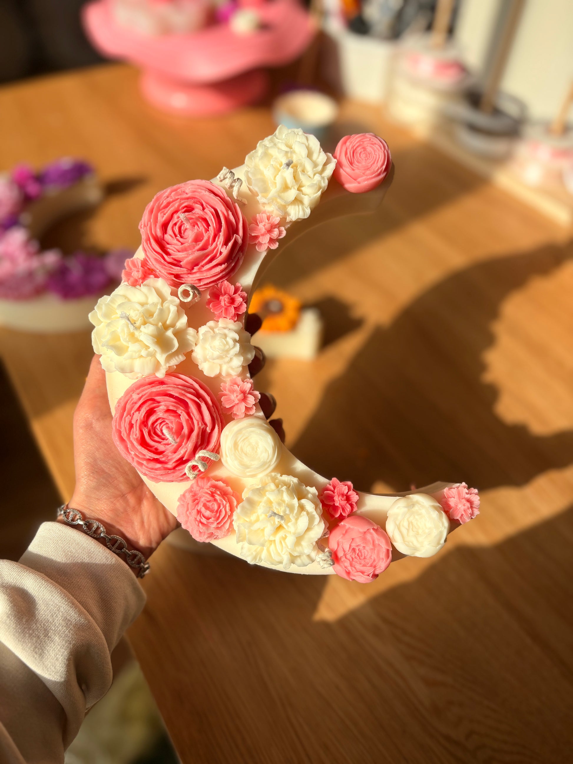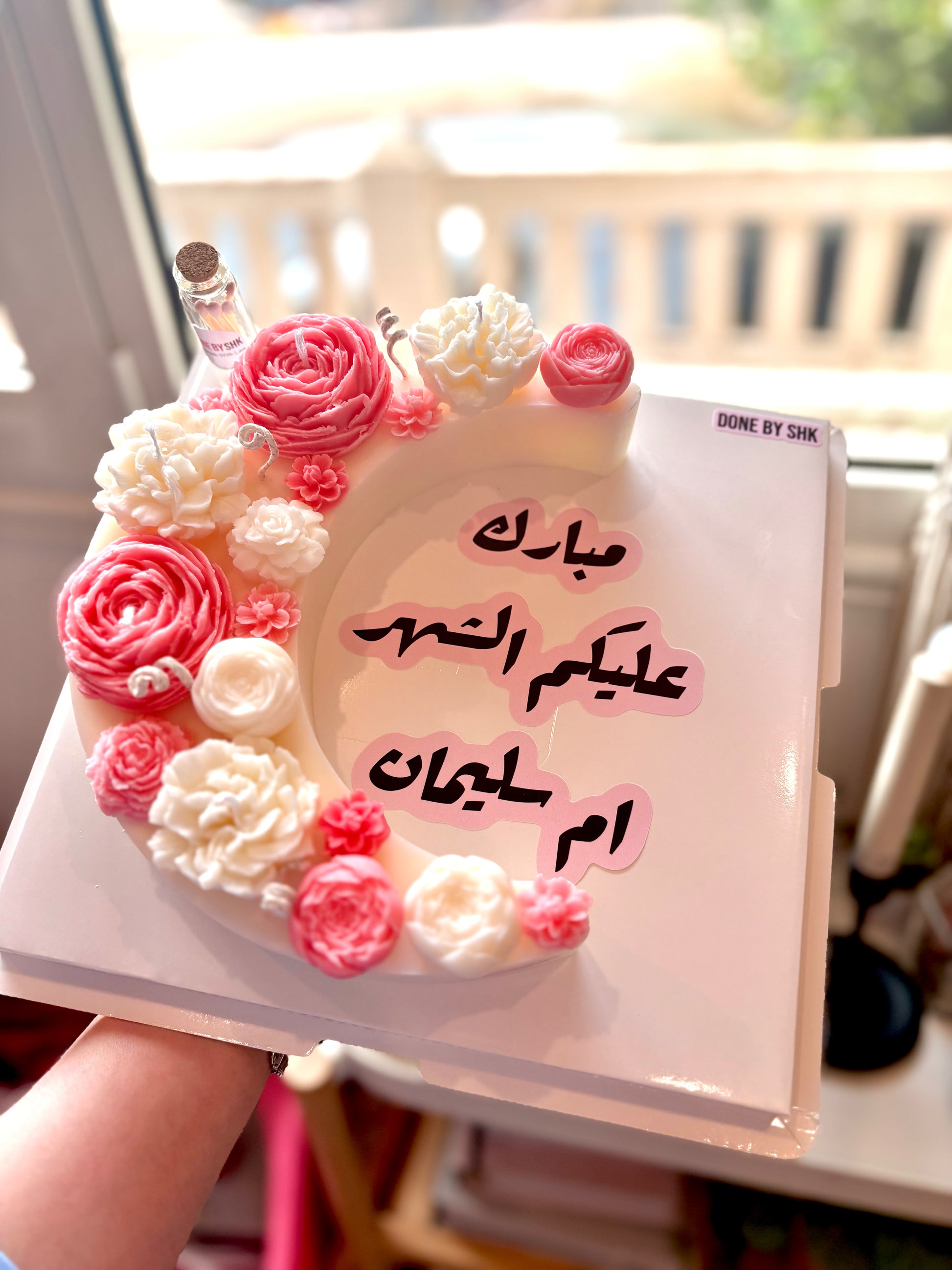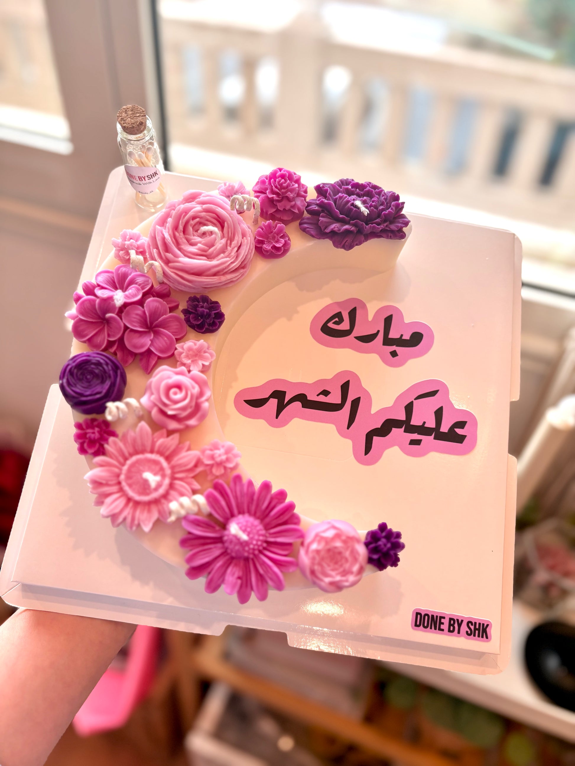 شمعة هلال رمضان مزينه بالزهور المعطره الملونه